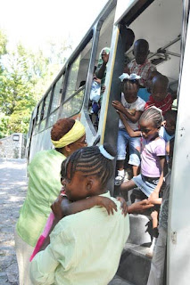 As usual in Haiti, the kids were late. We'd all pitched in so they could ride a bus over. But the bus was late so we were all anxiously awaiting their arrival. The best thing for me was that a little girl name Lyesha was there early with her new mom! She was adopted and was to leave with her new mommy the following Wednesday, she was chattering on about going to Argentina and she was all smiles. I thought it was awesome that she got to attend the Christmas party with her orphanage family before she left. Here she is playing with Sonia, one of the regular volunteers.